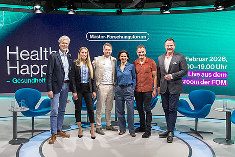 Zum Start in die Master-Abschlussphase unterstützen wir unsere Studierenden zu jedem Semesterstart mit einem passgenauen und einzigartigen Format: dem bundesweiten Digitalen Master-Forschungsforum. Dafür öffnen die Forschungseinrichtungen der FOM den Studierenden jedes Semester ihre Türen. Gemeinsam mit hochkarätigen Fach- und Führungskräften aus der Wirtschaft bieten sie aktuellen fächerübergreifenden Input zu relevanten Forschungsthemen in Vorträgen und Diskussionsrunden. Unsere Studierenden sind stets eingeladen, virtuell mitzudiskutieren und die Anregungen der Expertinnen und Experten für ihre Thesis mitzunehmen.